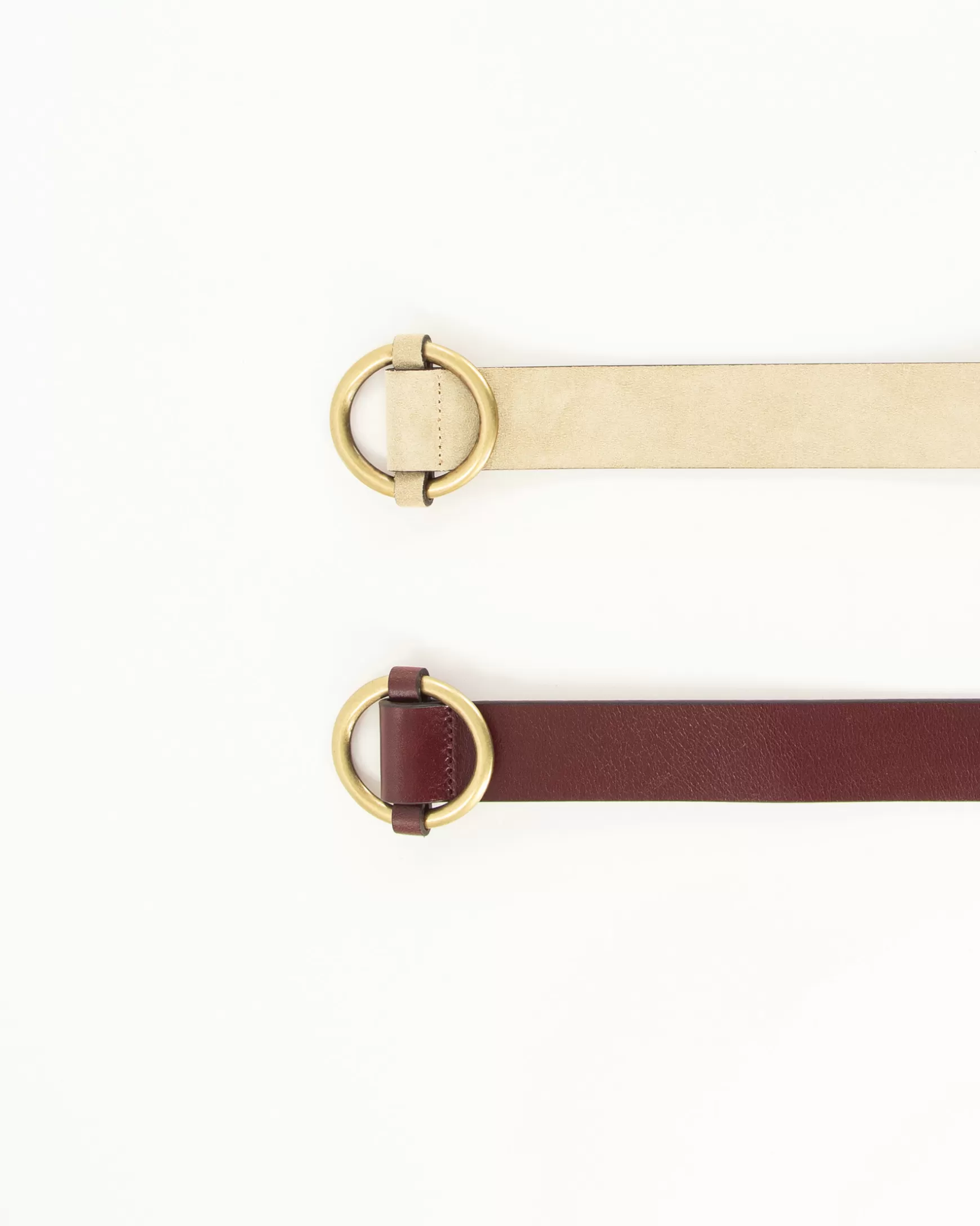 Gürtel aus pflanzlich gegerbtem Rindsleder mit Schiebeschnalle.