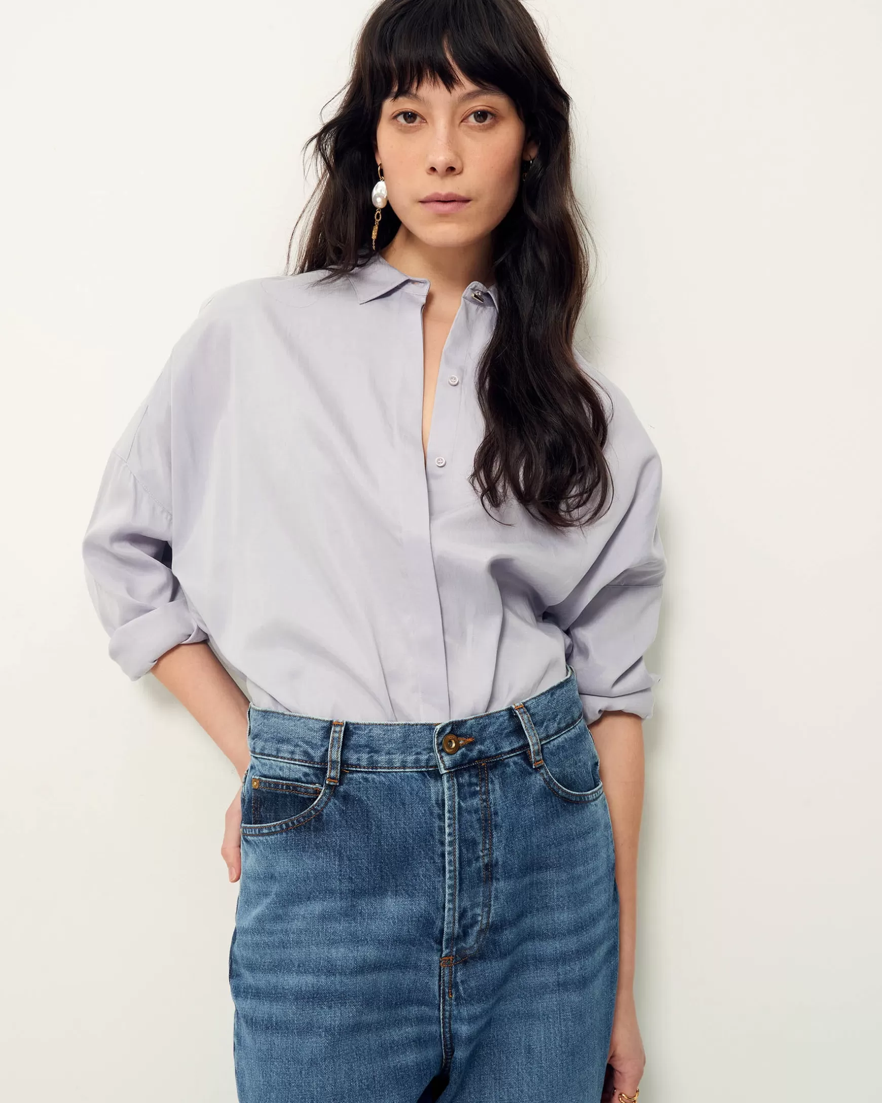 Locker geschnittenes Hemd mit tief angesetzten Armlöchern aus Cupro-Satin.