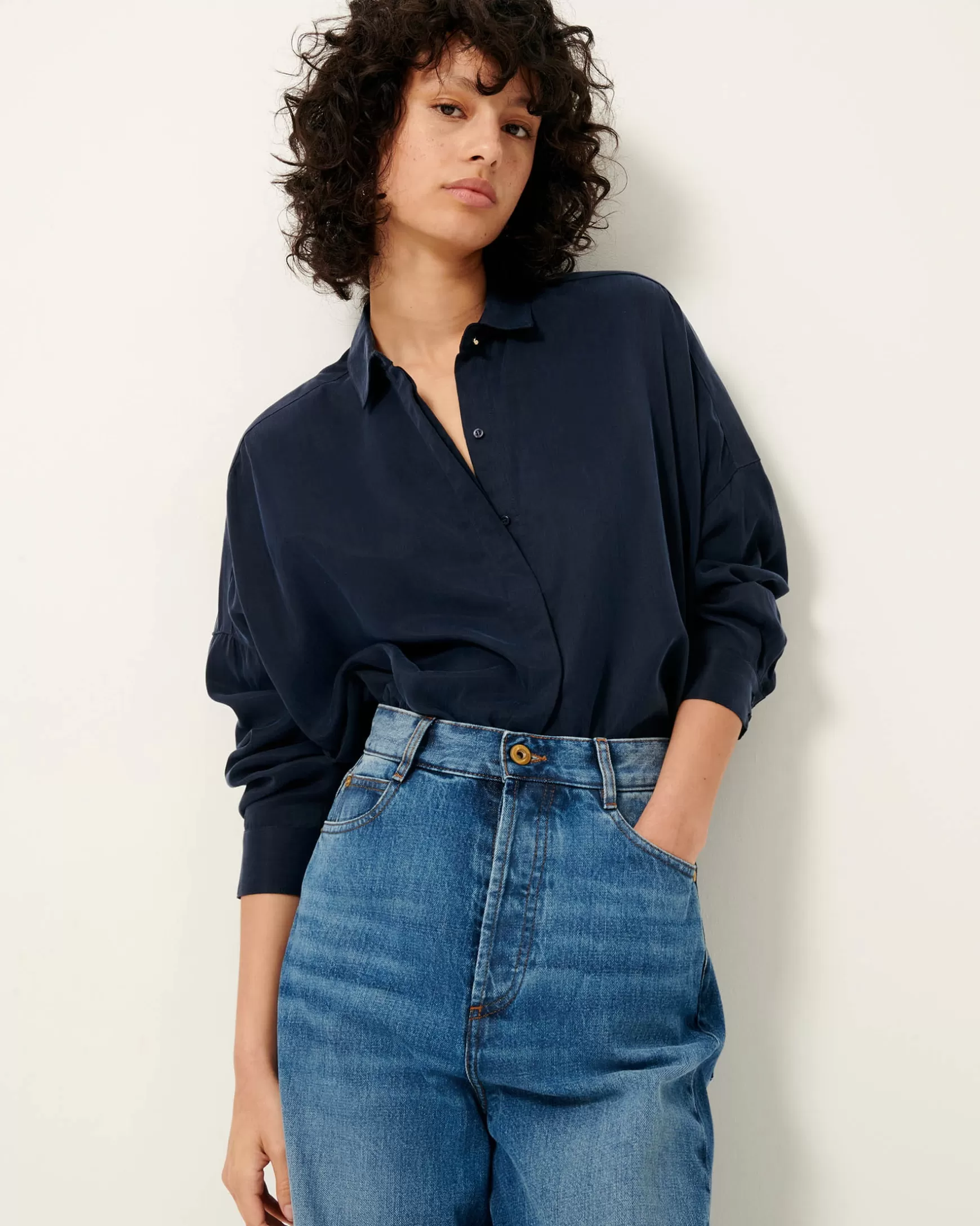 Locker geschnittenes Hemd mit tief angesetzten Armlöchern aus Cupro-Satin.
