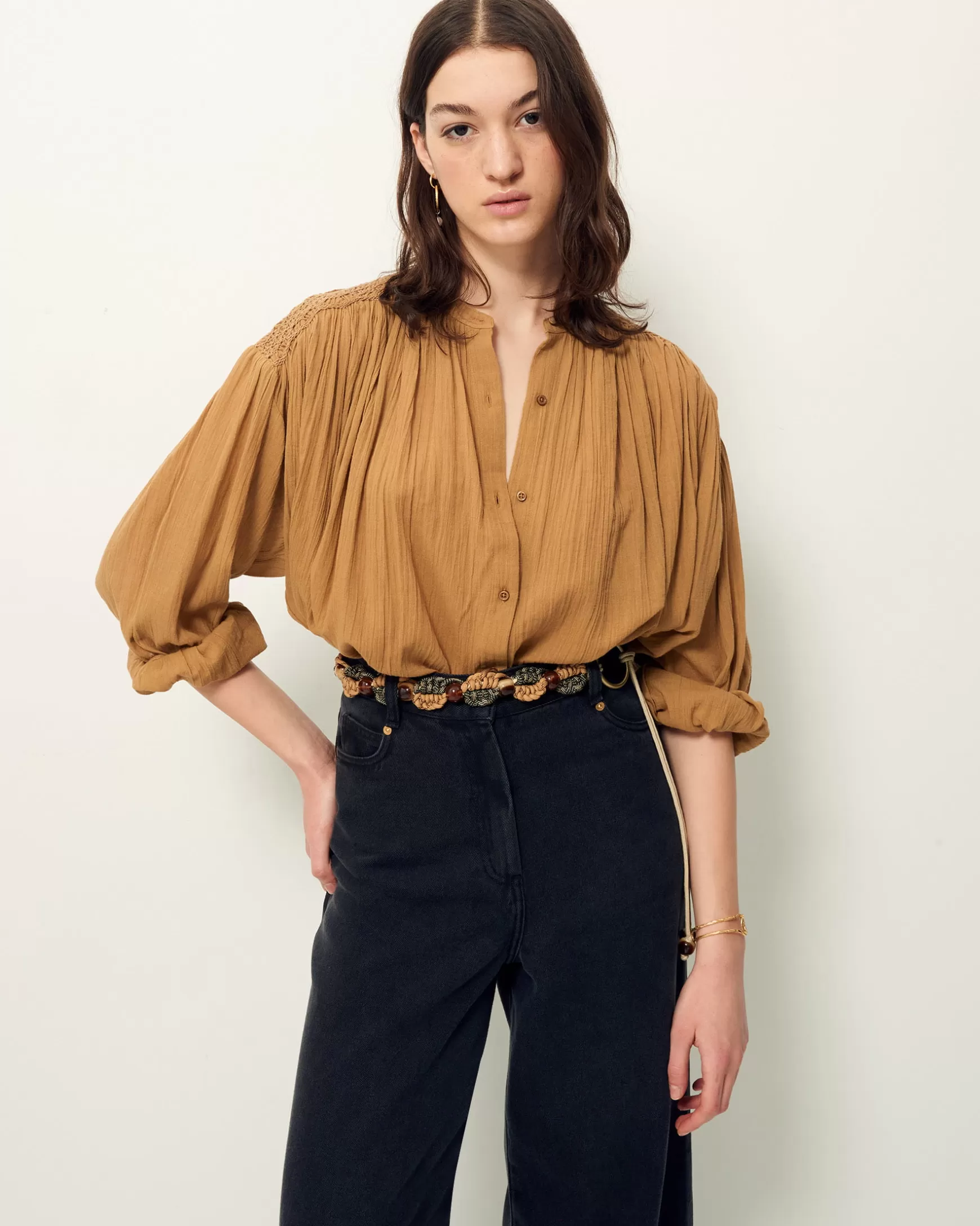 Weite, an den Schultern und am Rücken gesmokte Bluse aus antikem Baumwoll-Voile.