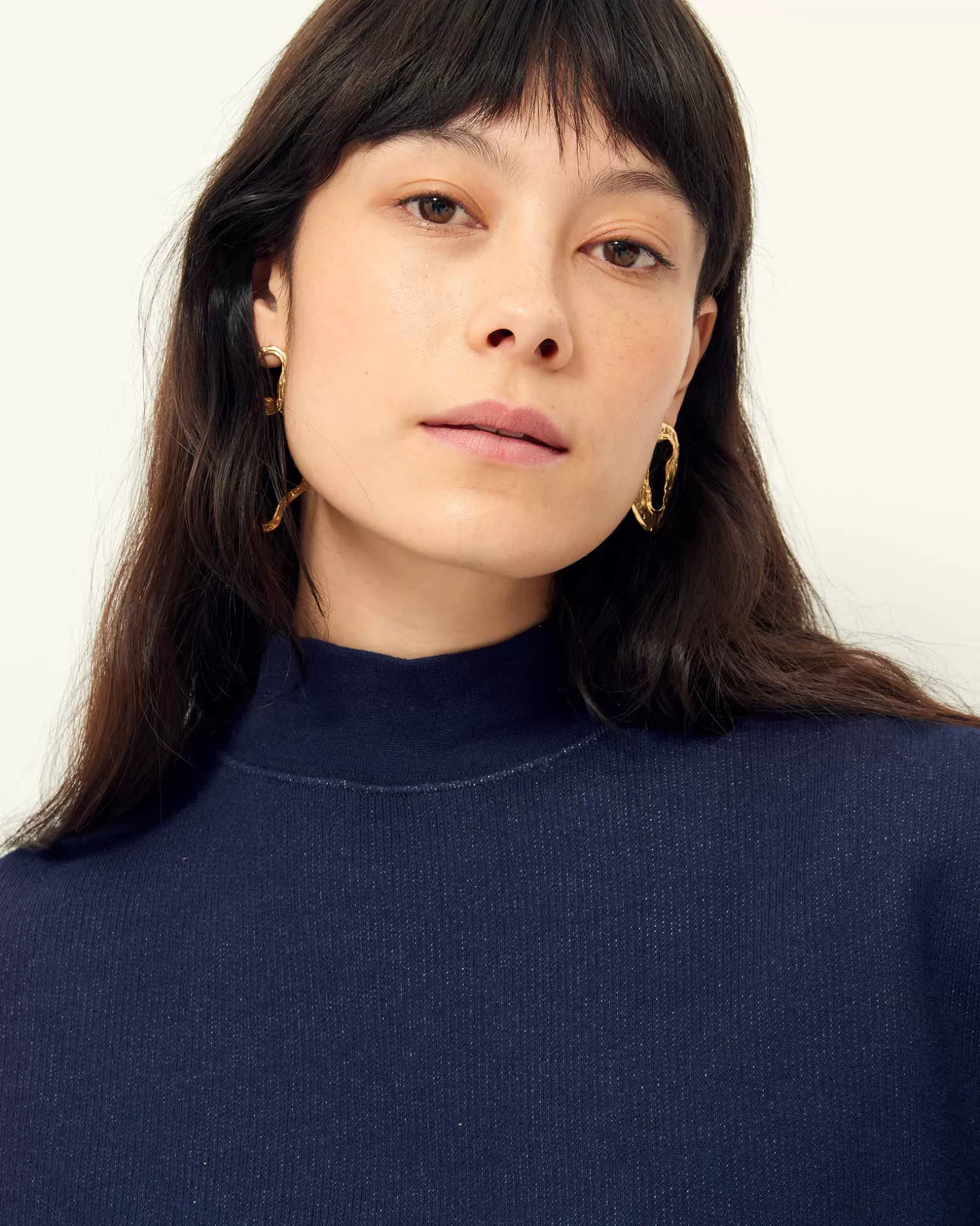 Weit geschnittenes Sweatshirt mit Kaminkragen und 3/4-Ärmeln aus innen angerautem Molton, in Portugal angefertigt.